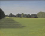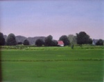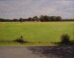 2002straat raalte (fragment), 30x40cm, ik heb het schilderij onder de scanner gelegd, paste niet helemaal, strook rechts en onder ontbreken. dit is de straat waar ik woon. veldezeltje op straat gezet.